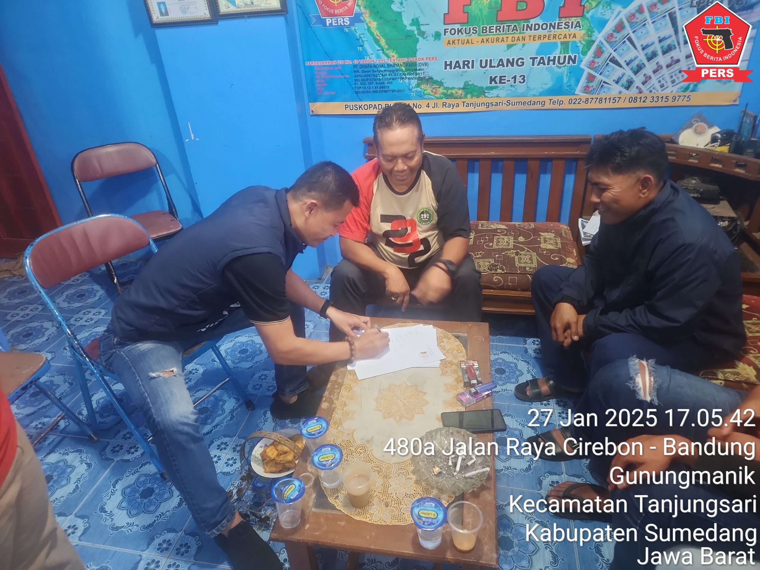 Pada hari senin 27 januari 2025 sekitar pukul 13.00 wib Dedi Supriadi yang tinggal di jl raya pacet Kp cikujang rt.05 rw 04 kel. Maruyung kec. Pacet – kab. Bandung – prov.jawa barat mendatangi kantor redaksi tabloid fokus berita indonesia ( FBI ) “cetak & online ” di kec.tanjungsari – kab .sumedang .