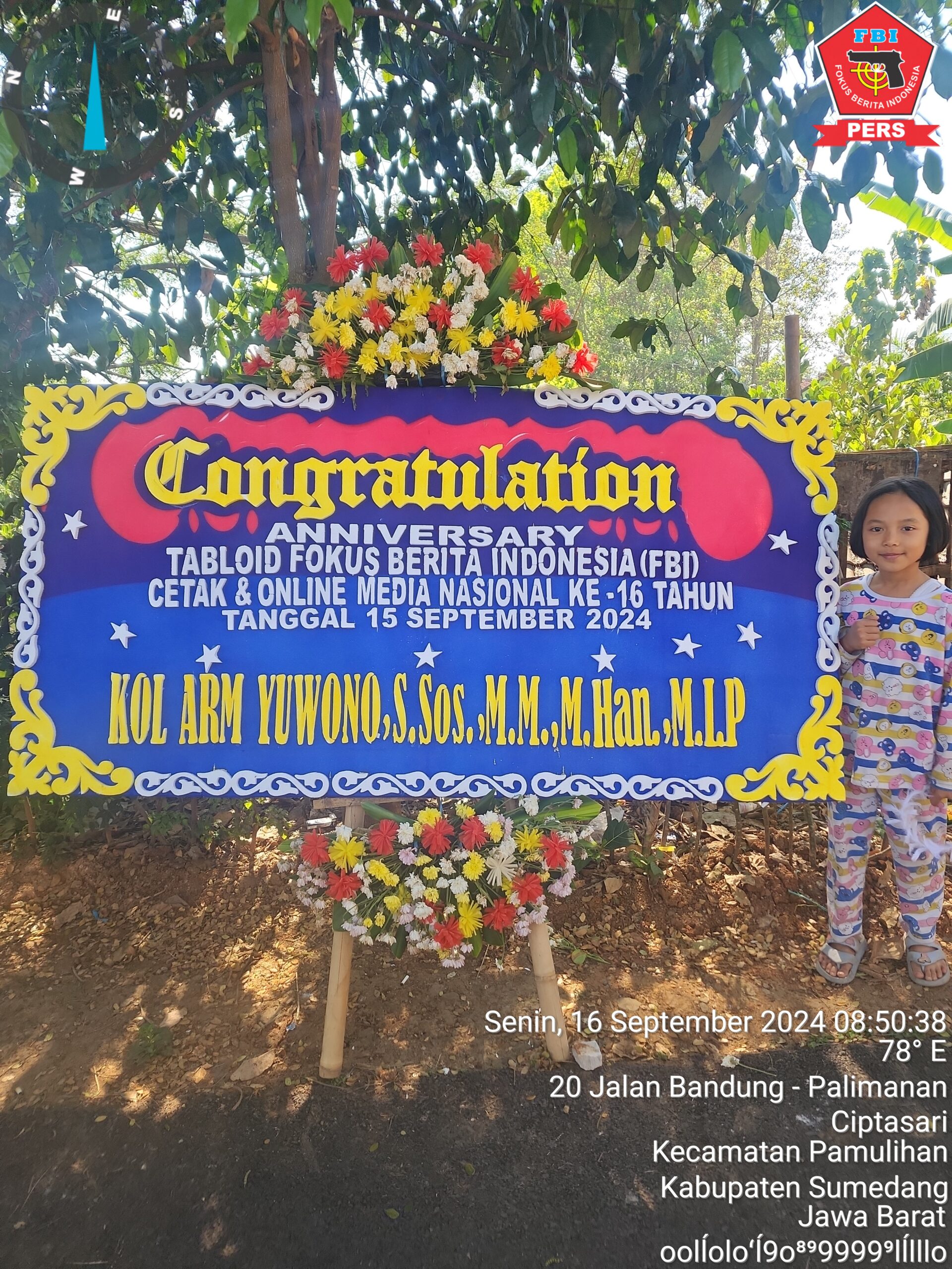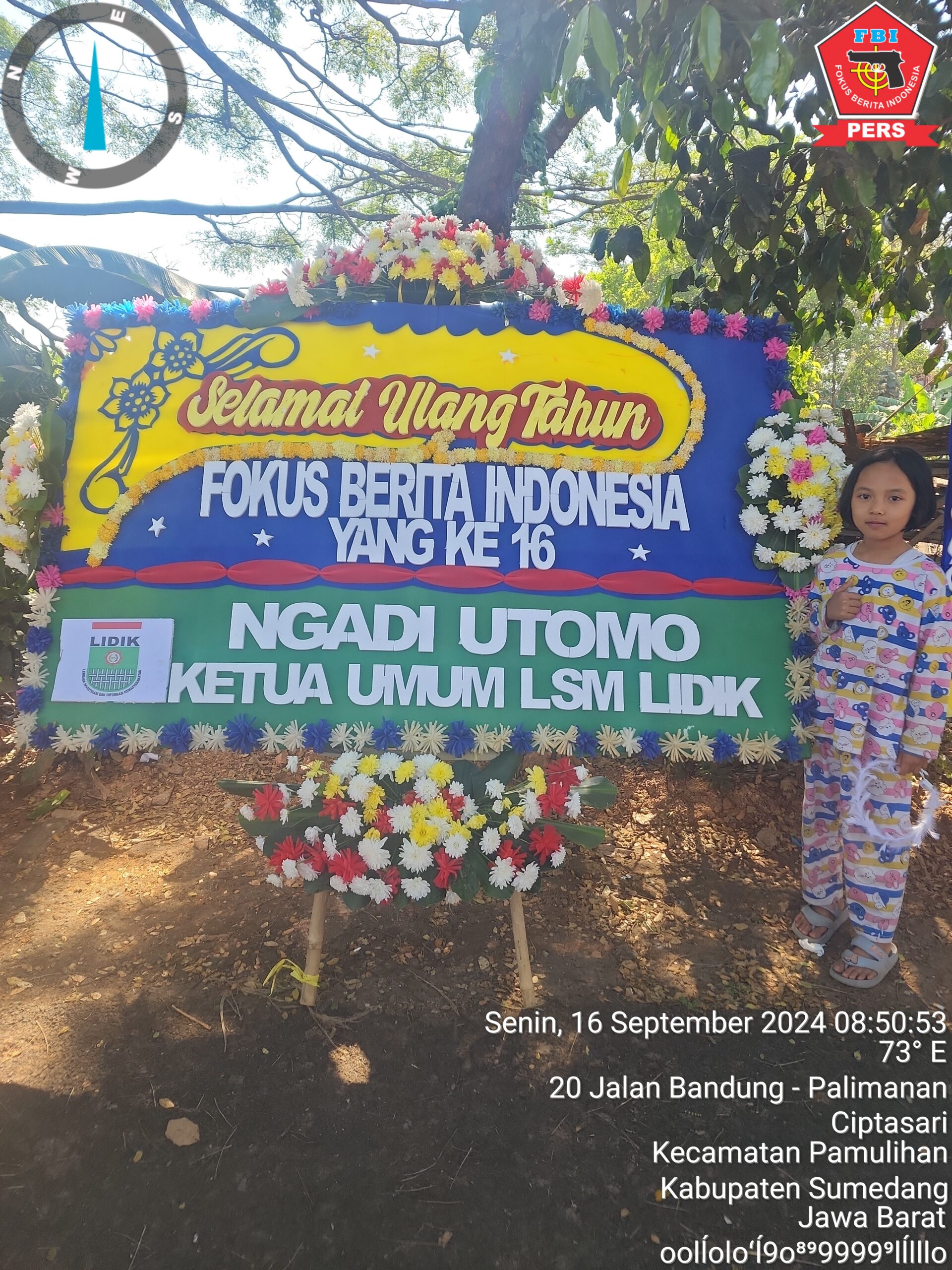 Sumedang FBI . www.tabloidfbi.com,- Hari jadi yang ke- 16 untuk Media tabloid Fokus Berita Indonesia ( FBI ) ” cetak & Online yang di adakan di kantor redaksi Sumedang, seperti tahun tahun sebelumnya, harlah tahun ini juga mengadakan bansos ( bantuan sosial ) kepada anak- anak yatim piatu, lansia dan disabilitas. Minggu 15/9/2024