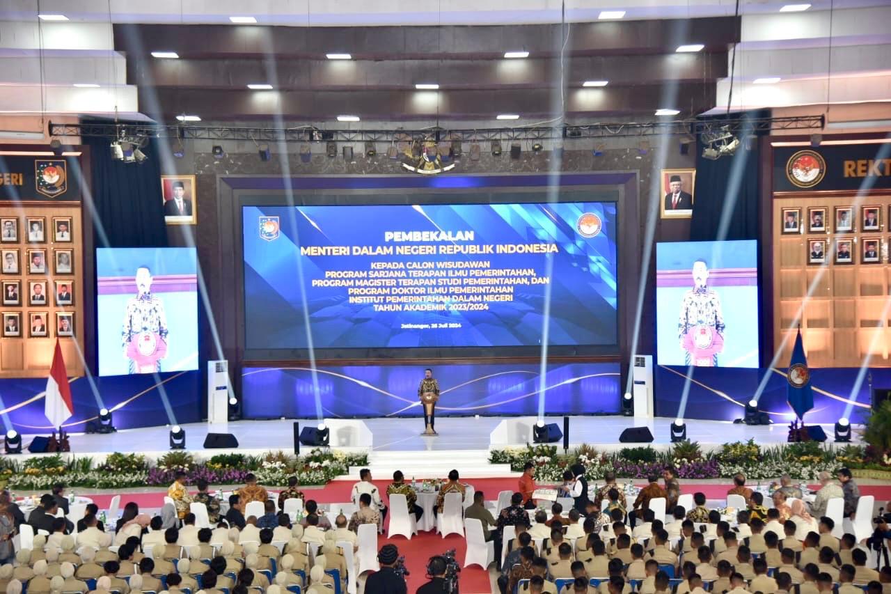 Jatinangor FBI .www.tabloidfbi.com – Jumat (26/07/2024), “Indonesia On the Right Track, sehingga Saya yakin Indonesia pada tahun 2040 atau 2045 akan berhasil mencapai visi sebagai Indonesia Emas dan ditangan para praja yang kini menjadi calon wisudawan inilah visi tersebut dapat dicapai”, ujar Menteri Dalam Negeri, Prof. H. Moh. Tito Karnavian, Ph.D saat memberikan pembekalan kepada calon wisudawan IPDN tahun akademik 2023/2024. Mendagri hadir di Gedung Balairung Rudini Kampus IPDN Jatinangor dengan didampingi oleh Wakil Menteri Dalam Negeri, John Wempi Wetipo., S.H., M.H dan Sekretaris Daerah Provinsi Jawa Barat, Dr. Drs. Herman Suryatman, M.Si serta para pejabat lainnya. Mendagri memberikan pemahaman terkait perkembangan situasi dan kondisi Indonesia saat ini dalam upaya menuju Indonesia Emas 2045 kepada calon wisudawan IPDN yang rencananya akan diwisuda oleh Mendagri pada hari Senin, 29 Juli 2024 dan disusul dengan pelaksanaan Pelantikan Pamong Praja Muda pada tanggal 1 Agustus 2024 oleh Wakil Presiden RI.