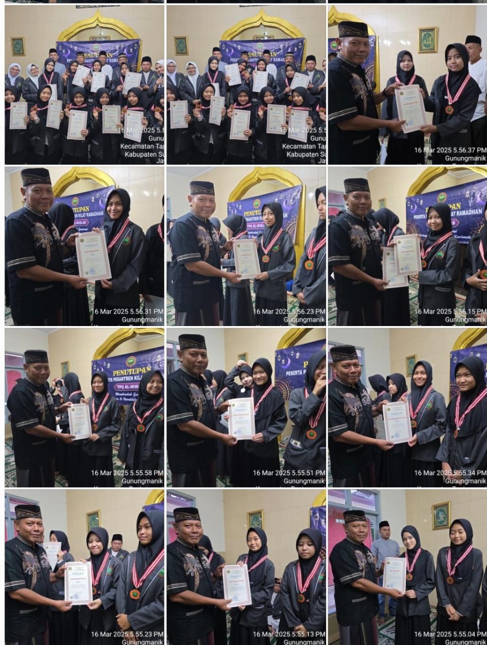 Baik di madarasah Nurul Mustopa dan TPQ Al Iklas sama – sama memberikan piagam dan mendali .sebagai motifasi pada para santri .dalam sambutan ketua Rw.04 puskopad yang juga mewakili ketua Rw.03 puskopad menyampaikan rasa bangga atas terlaksananya santri kilat ini semoga semua bermanfaat dan para guru yang mengajar menjadi ladang amal ibadah .