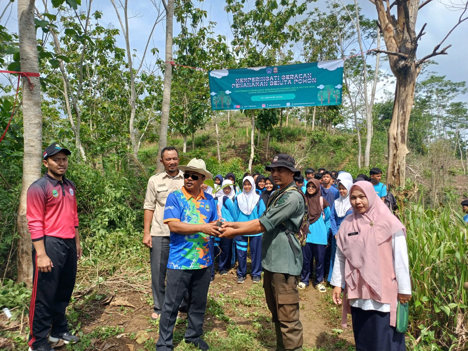 Kegiatan penanaman sejuta pohon ini’ di laksanakan pada hari Rabu tgl 10Januari 2024 di daerah desa Cikawung,kec Pancatengah kab Tasikmalaya , untuk menumbuhkan rasa cinta lingkungan dan alam serta menjaga kelestarian nya agar ekosistem alam tetap baik dan terhindar dari bencana alam longsor atau banjir yang bisa membahayakan bagi keselamatan manusia,juga menjaga agar tidak terjadi pencemaran udara, oleh karena beliau sebagai kepala sekolah mengajak dan mengedukasi bagi generasi muda/ siswa -siswi SMAN 1Cikatomas,agr memiliki kesadaran dan kepedulian penting nya menjaga kelestarian alam dan lingkungan nya, demikian keterangan singkat beliau”, ( alboyin.s-abah korwilpriatimFBI)